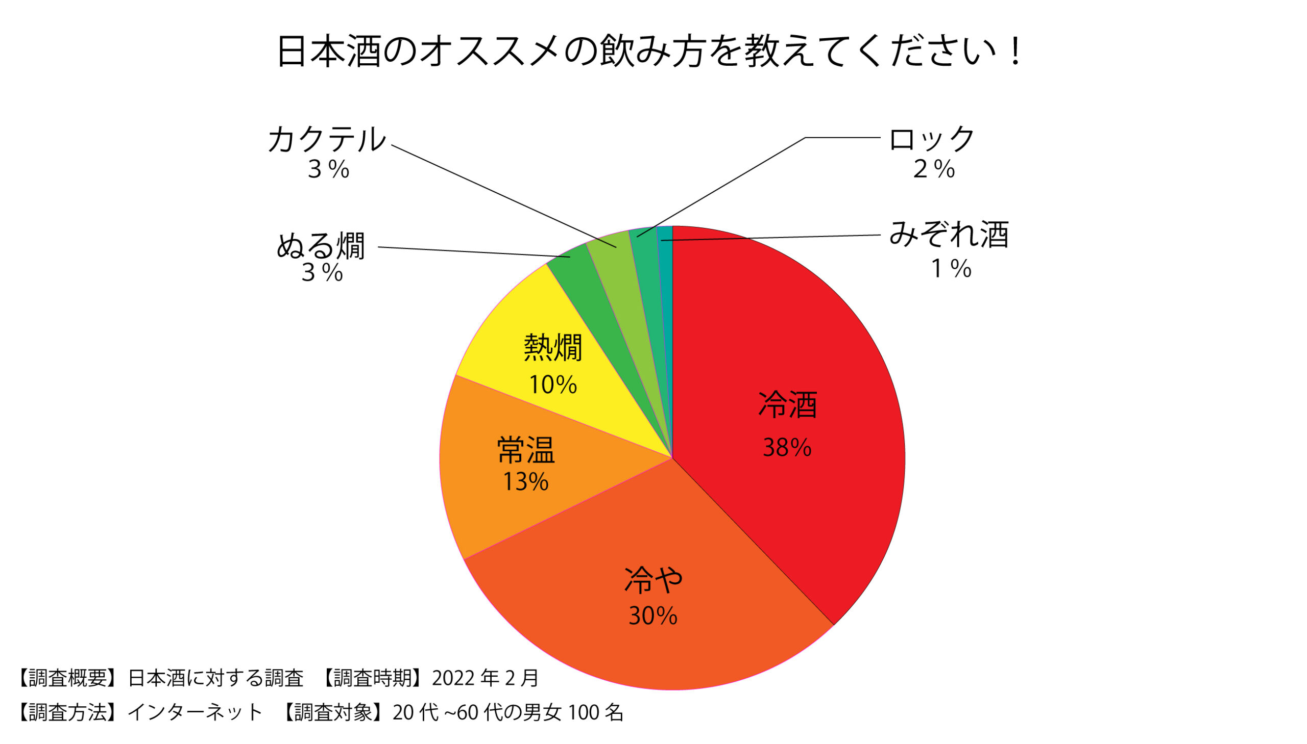 そもそも冷酒が一般に広く普及したひとつのきっかけは、日本でバブル期に起こった「吟醸酒ブーム」だといわれています。この当時はすでに社会の成熟も進み、日本酒も原材料や製造方法にこだわった良質なものが求められていました。そんな時代背景から生まれたのが吟醸酒です。口当たりがまろやかでスッキリとした味わいの吟醸酒は、それまで日本酒に興味のなかったひとたちまでをも席巻して、またたく間にブームに発展しました。今でも下図のように、冷酒は大衆に広く好まれていることがわかります。