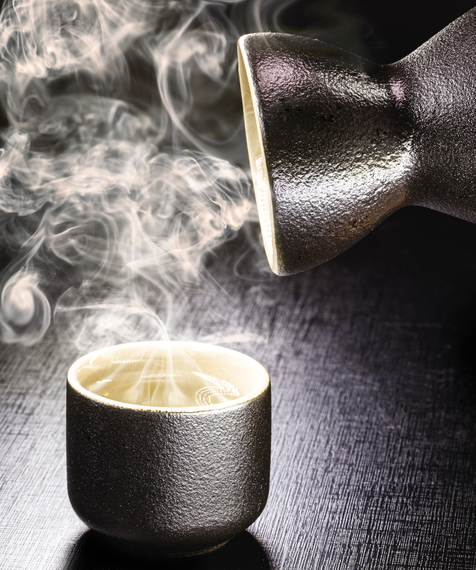 ほうじ茶の茶葉には、日本酒の製造工程では出てこない、タンニン由来の渋味が含まれています。タンニンはひとの舌や口腔粘膜のタンパク質と結合するため、料理とお酒の合う幅がとても広がります。50℃くらいに燗をつけて茶葉を入れ、こすのがちょうど良い味わいになります。