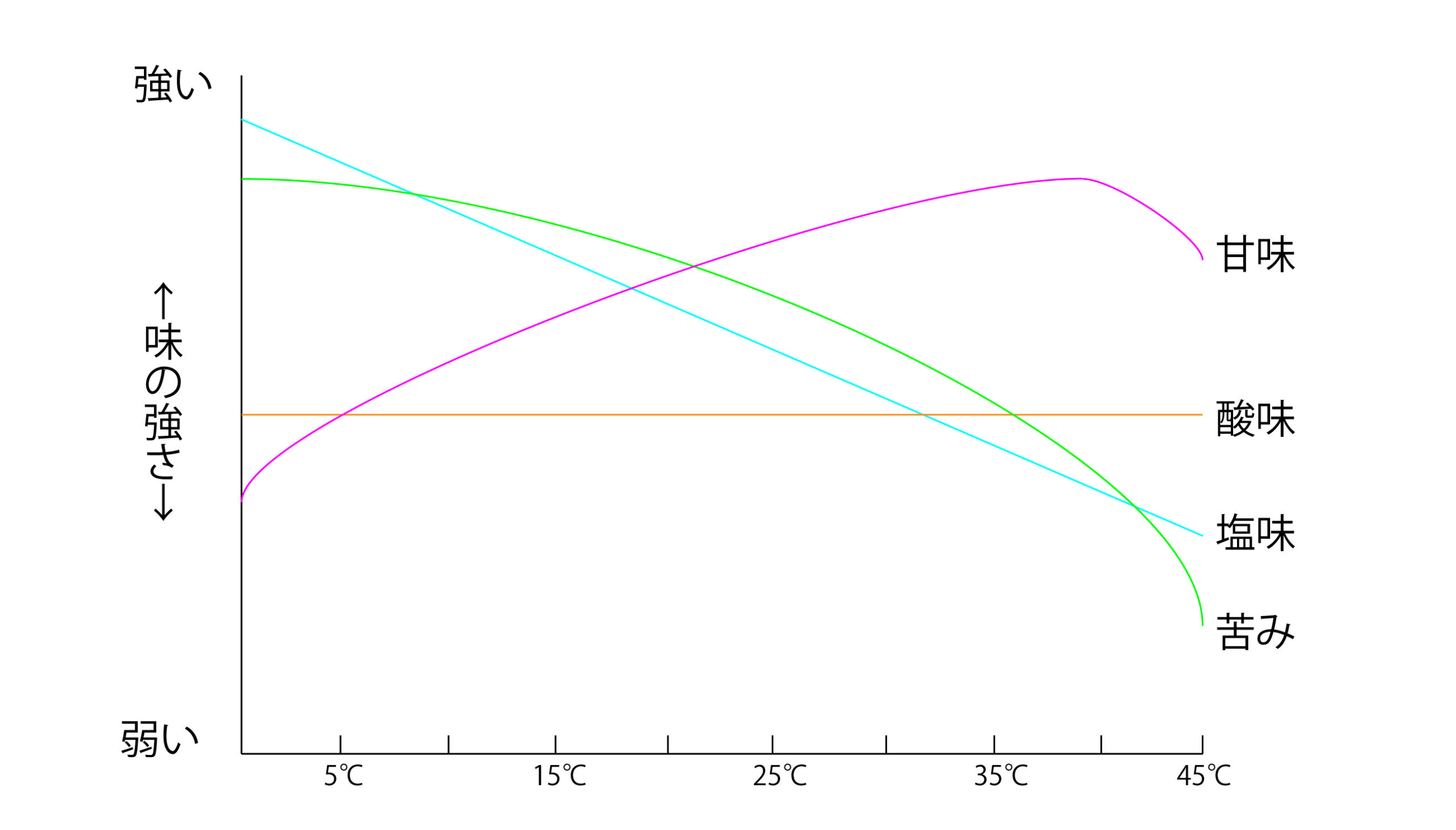 温度が上がると、「甘味」と「酸味」が増える